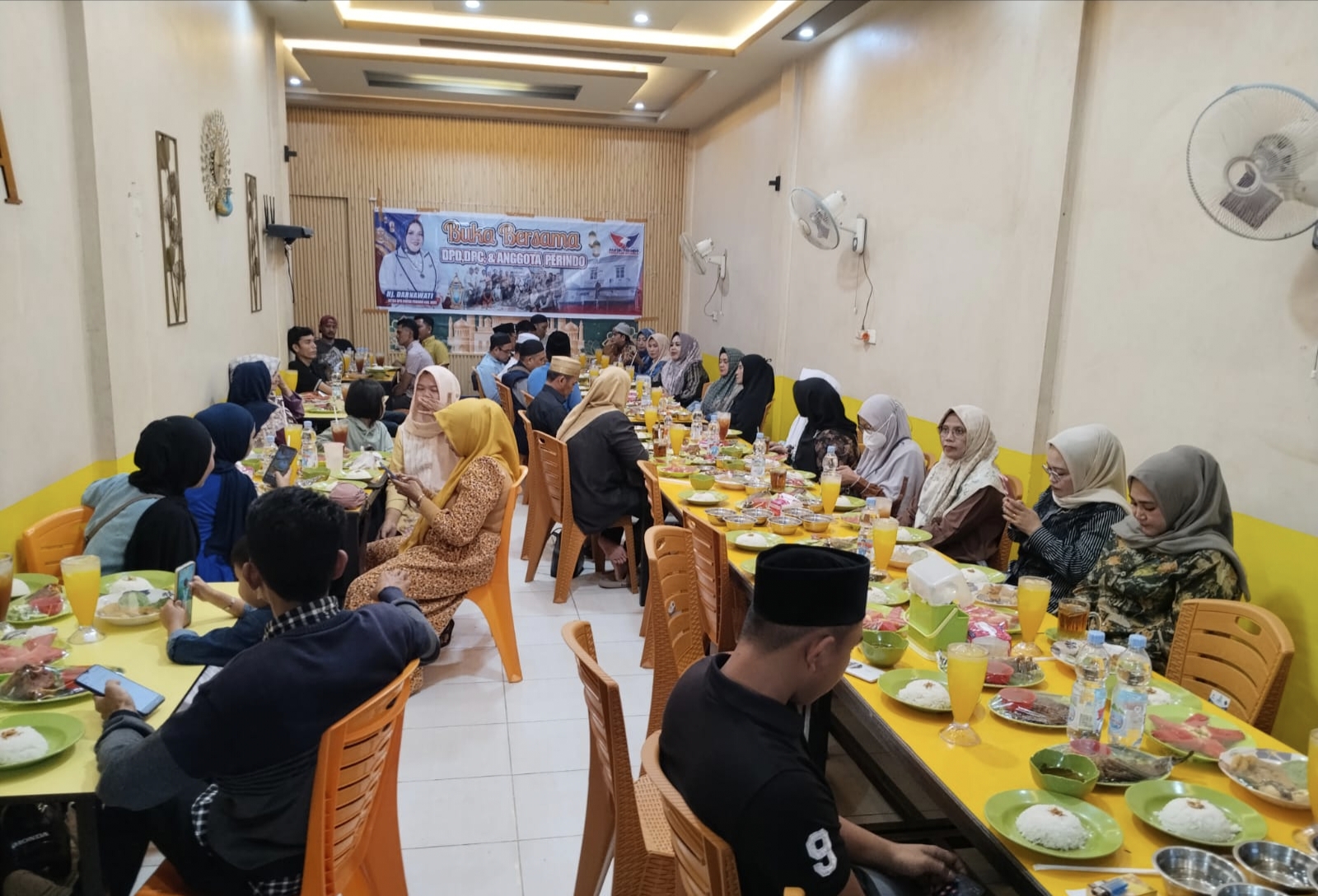 Acara buka puasa bersama ini dihadiri oleh jajaran pengurus DPD, pengurus DPC dari berbagai kecamatan, serta kader anggota Partai Perindo Kabupaten Inhil.